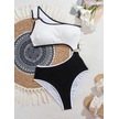 Yaz Patlamasımmodelleri Yüksek Bel İnce Tek Omuz Tek Tek Parça Mayo Metal Halka Degoratifi Darbe Renk Diişbikini Akımım Elbise Kadını Plaj Taatil Geçmezi Beyaz - Siyah