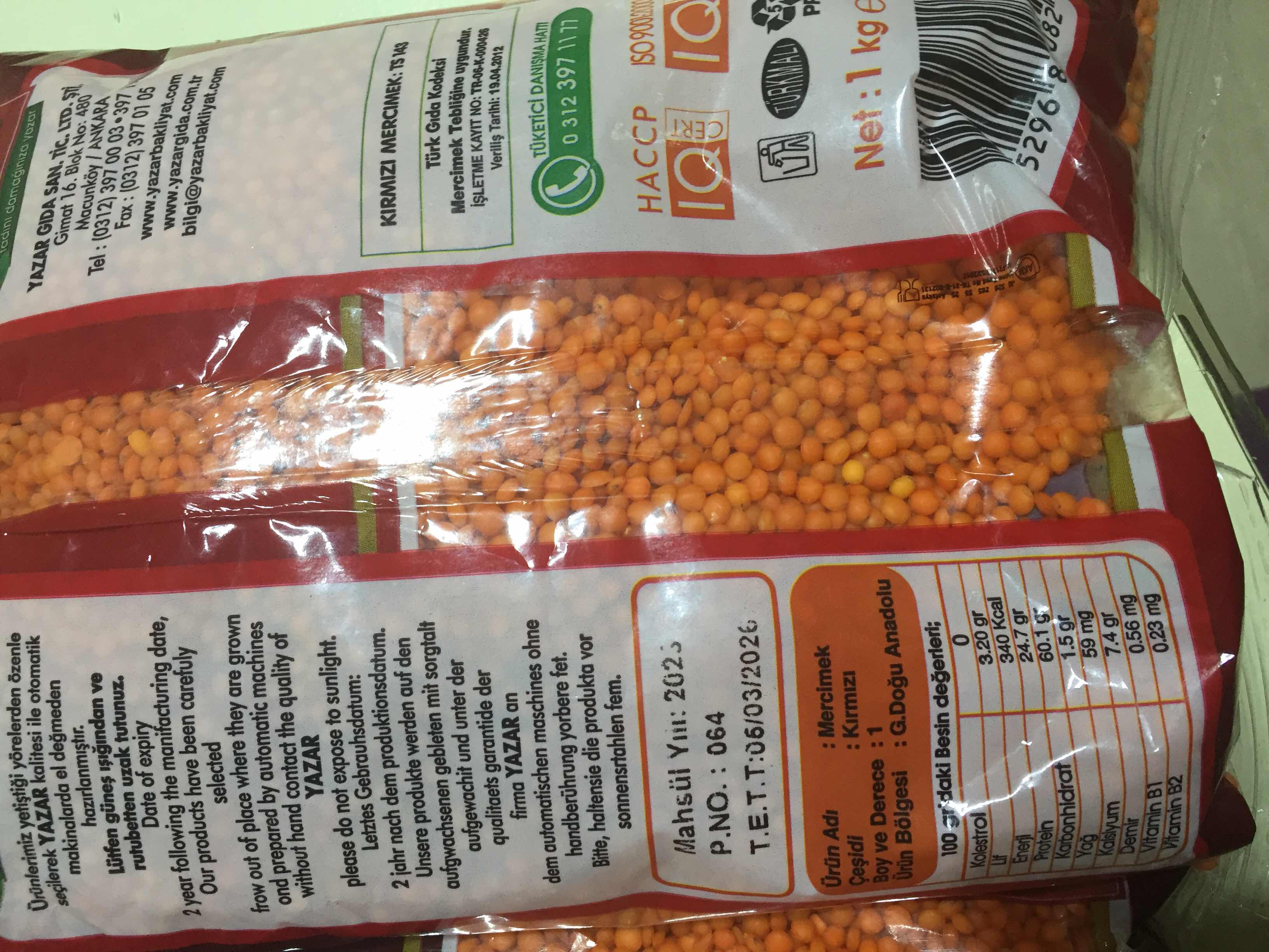 Yazar Yerli Kırmızı Mercimek 4 x 1 KG