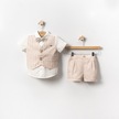 Yazlık Çizgi Yelekli Metal Armalı Bebe Erkek 2'li Takım Bej