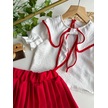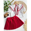 Yazlık Kısa Kollu Bluz Pileli Etek Kız Çocuk Takım Kırmızı