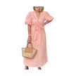 Yazlık Maksi Elbise V Yaka Bağcıklı Bel Kabarık Kollu Düz Renk Bol Pembe