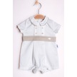 Yazlık Pileli Kemerli Düğme Detaylı Bebe Erkek Tulum Bej