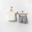 Yazlık Yakası Süs Dikişli Bebe 2'li Erkek Takım Gri