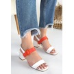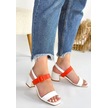 Year Beyaz Cilt Turuncu Detaylı Beyaz Kadın Topuklu Ayakkabı Beyaz3