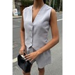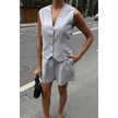 Yelek Şort Flamlı Keten Takım 10133-17 Gri