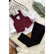 Yelekli Papyonlu Erkek Çocuk Takım Elbise Bordo
