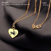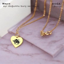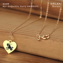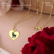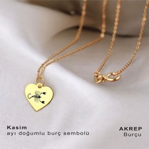 Yengeç Burçlarına Zincirli 14 Ayar Altın Plakalı Kalp Motifli Hediyelik Kolye-352burç Yengeç