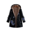Yeni Kadın Yaprak Baskılı Kapşonlu Uzun Kollu Retro Ceket Sıcak Siyah
