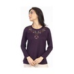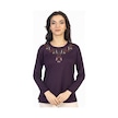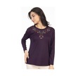 Yeni Model 2024 Nakış İşlemeli Yuvarlak Yaka Likralı Anne Penye Bluz 6450-mürdüm