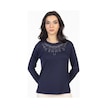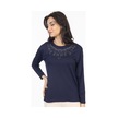 Yeni Model Taş İşlemeli Yuvarlak Yaka Likralı Anne Penye Bluz 6420-lacivert