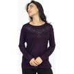 Yeni Model Taş İşlemeli Yuvarlak Yaka Likralı Anne Penye Bluz 6435-mürdüm