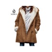 Kapüşonlu Düğmeli Peluş Mont - Kadın Beyaz