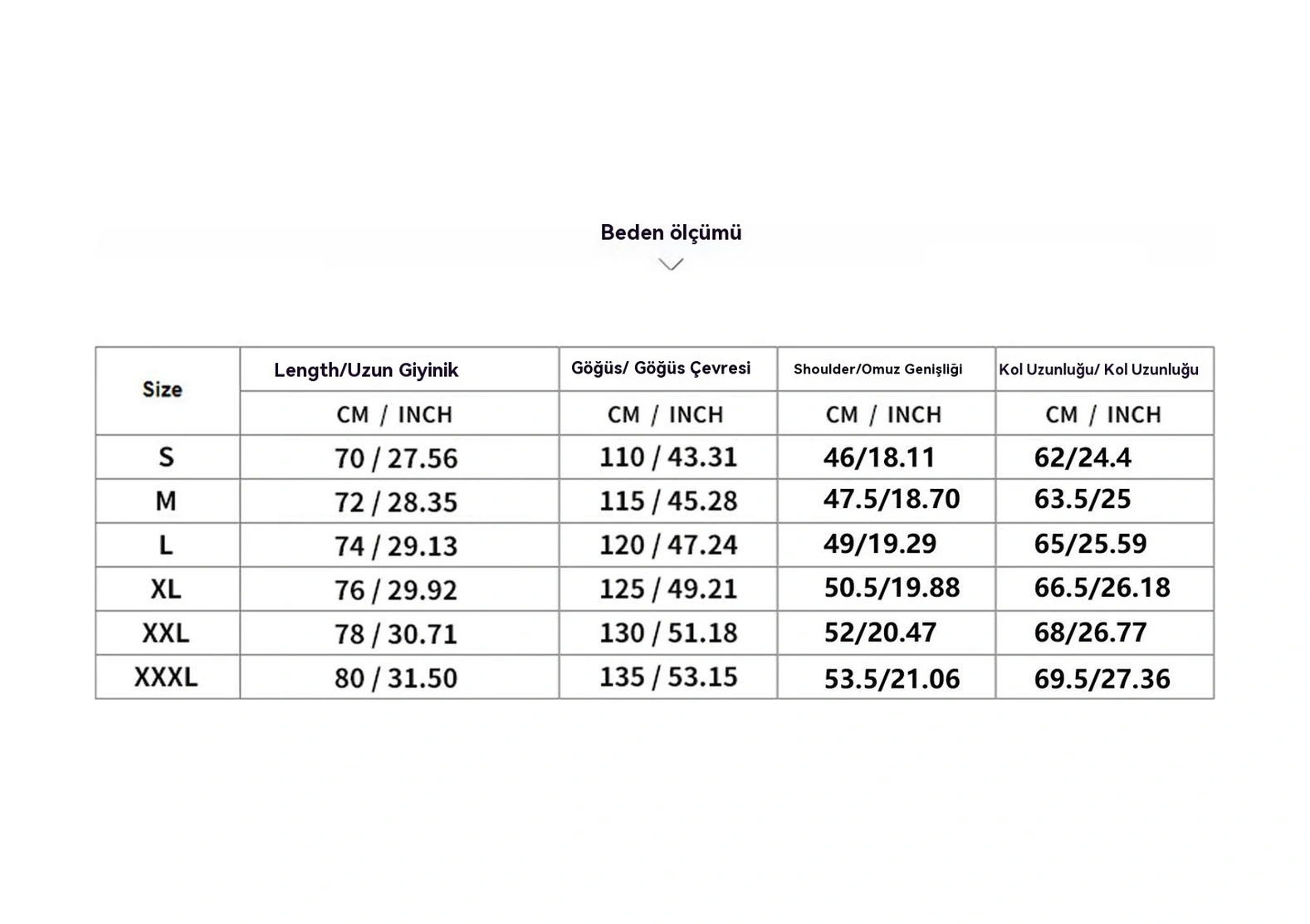 Beden Tablosu