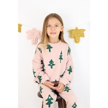 Yeni Sezon 3 İplik Mini Figür Çam Ağacı Desen Mini Figürlü Sweatshirt Eşofman Alt Üst Takım 2 Parça Taş