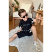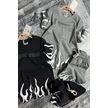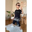 Yeni Sezon Alev Desenli Siyah Renk Erkek Çocuk Şortlu Takım Siyah