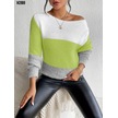 Yeni Sezon Kadın Kayık Yaka Uzun Kollu Triko Bluz Yeşil