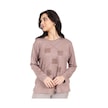 Yeni Sezon Kadın Orta Yaş Ve Üzeri Viskoz Lazer Baskı İşlemeli Lüks Anne Penye Bluz 23350-vizon