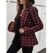 Yeni Sezon Kadın Yakalı Kareli Düğmeli Uzunkollu Dokumakrep Ceket Kırmızı