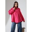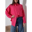 Yeni Sezon Poplin Kumaş Çift Cepli Oversize Pamuklu Kadın Tunik Gömlek Fuşya