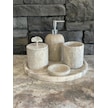 Yeni Silver Gümüş Traverten Mermer 5'li Banyo Seti Beyaz