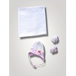 Yenidoğan Baskılı Double Face Şapka Ve Patikli 3lü Bebek Battaniye Takımı Pembe