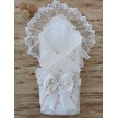 Yenidoğan Hanımeli Desenli Taç Nakışlı Delüks Kundak Bebek Battaniyesi Ekru