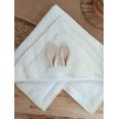 Yenidoğan Kulaklı Şapkalı Düğme Detaylı Fiyonklu Bebek Battaniyesi Kundak Krem Krem