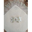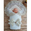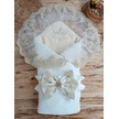 Yenidoğan Kuzulu Taç Nakış Güpürlü Fiyonklu Duvaklı Prizma Taş Unisex Kundak Bebek Battaniyesi Ekru