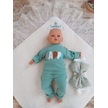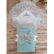 Yenidoğan Kuzulu Taç Nakış Güpürlü Fiyonklu Duvaklı Prizma Taş Unisex Kundak Bebek Battaniyesi Su Yeşili Çok Renkli