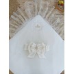 Yenidoğan Sahra Taç Nakışlı Plazma Taşlı Güpürlü Fiyonklu Duvaklı Trilüks Kundak Bebek Battaniyesi Ekru Renkli Çok Renkli