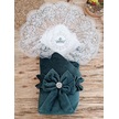 Yenidoğan Saray Kadife Taç Nakışlı İnci Fiyonklu Dantel Duvak Trilüks Kundak Bebek Battaniye Yeşil Yeşil
