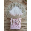 Yenidoğan Soft Kumru Melek Kanat Fiyonklu Gold Çift Dantel Duvaklı Trilüks Kundak Bebek Battaniyesi Pembe