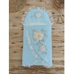 Yenidoğan Topçikli Gül Bahçesi Tül Örtülü Kız Erkek Bebek Klasik Kundak Bebek Battaniyesi Mavi