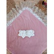 Yenidoğan Wool Yün Kumaş Taç Nakışlı Güpür Duvaklı Fiyonk Prizma Taş Unisex Kundak Bebek Battaniyesi Pembe Çok Renkli