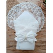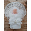 Yenidoğan Yakamoz Kumru Model Dantelli Taşlı Fiyonk Bebek Battaniyesi Kundak Ekru