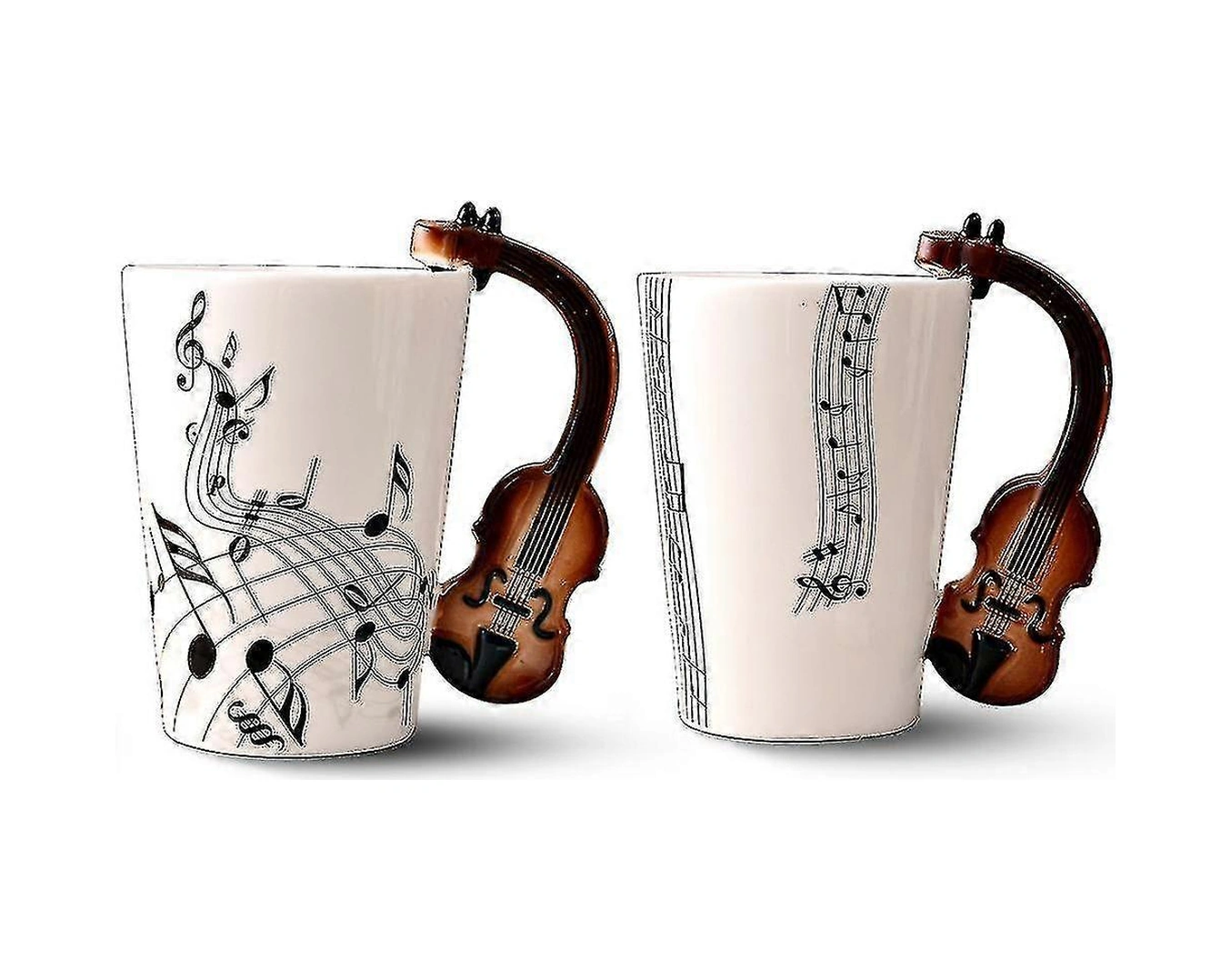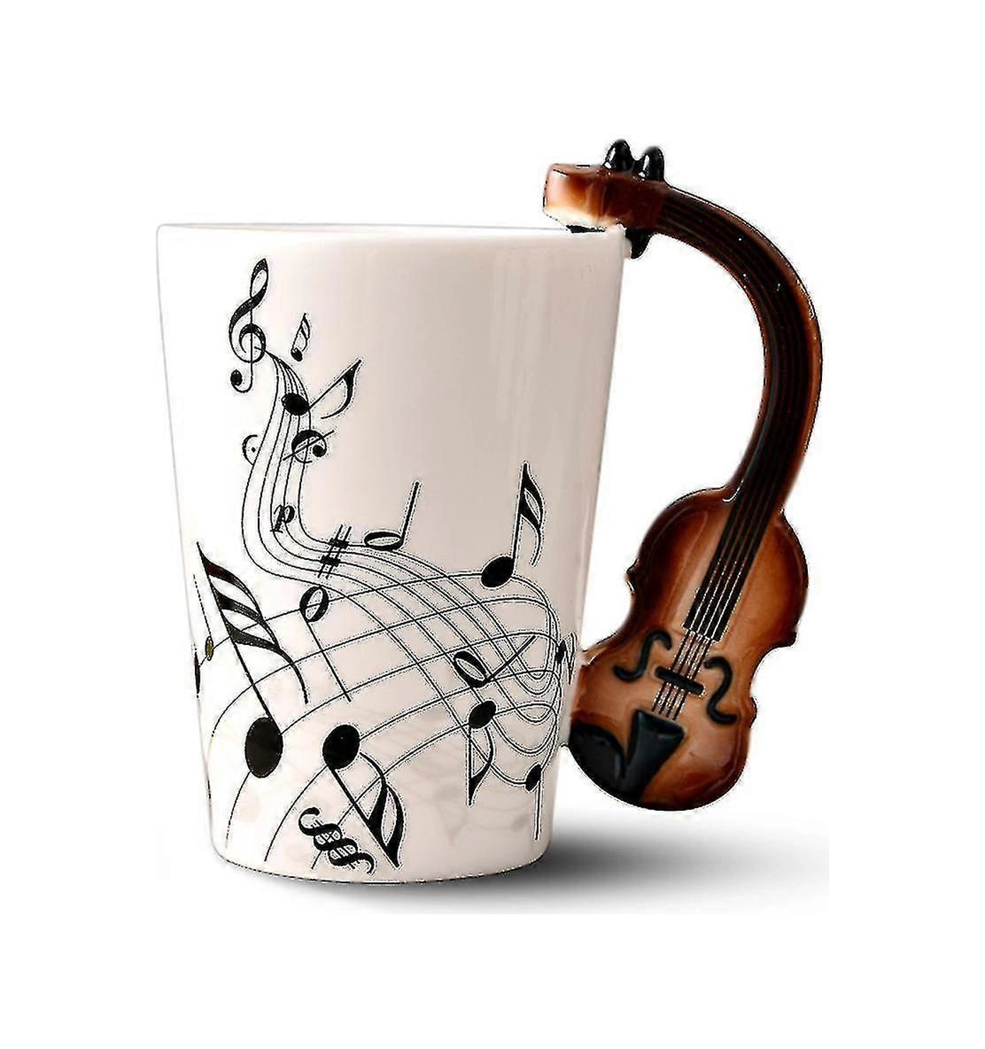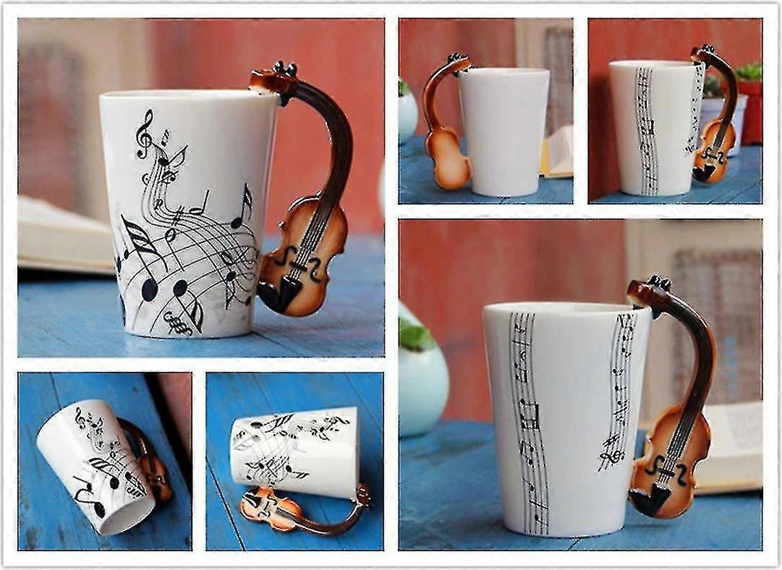 Yenilikçi Keman Saplı Seramik Kupa Ücretsiz Spektrum Kahve Süt Çay Fincanı Kişilikli Kupa Benzersiz Müzikal-zzy