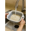 Yer Kaplamaz Katlanır Kare Süzgeç - Katlanabilir Kare Yıkama Süzgeci - Akordiyon Pirinç Süzgeci Beyaz - Gri