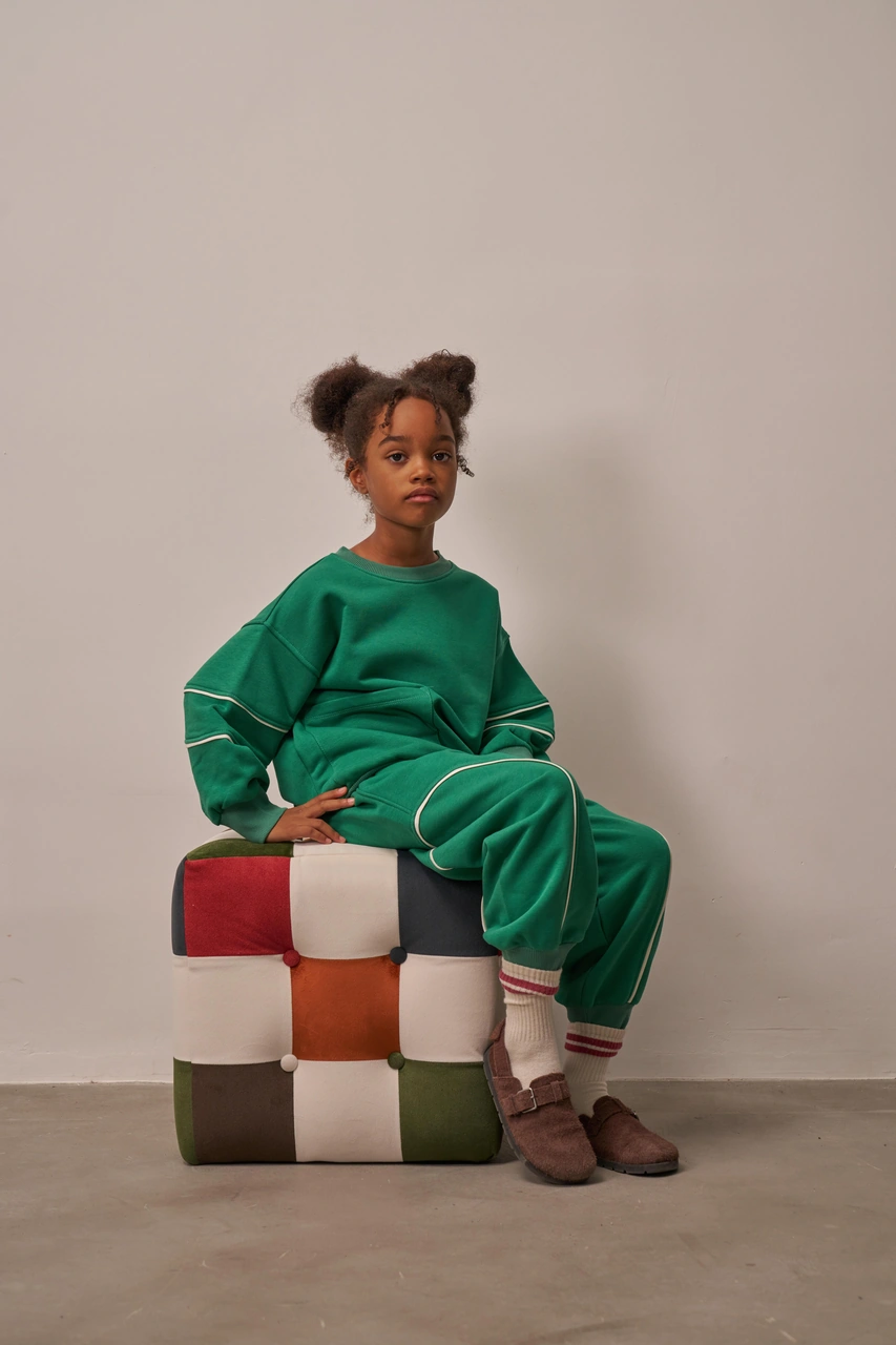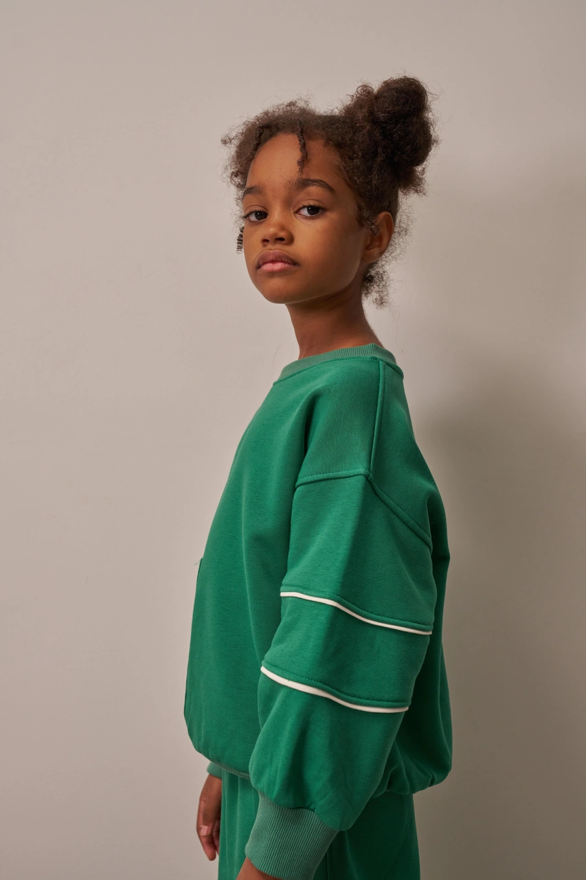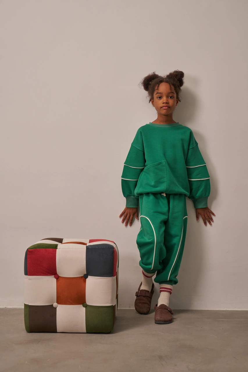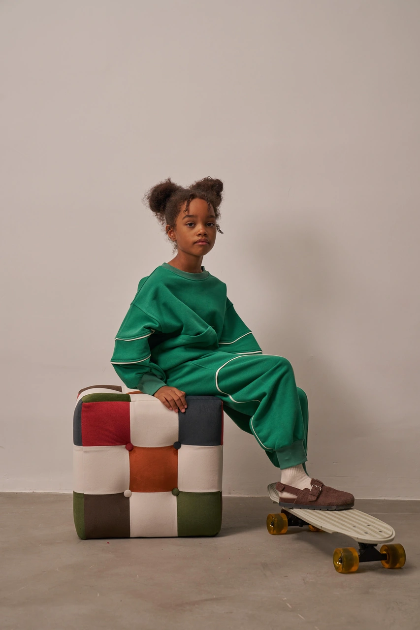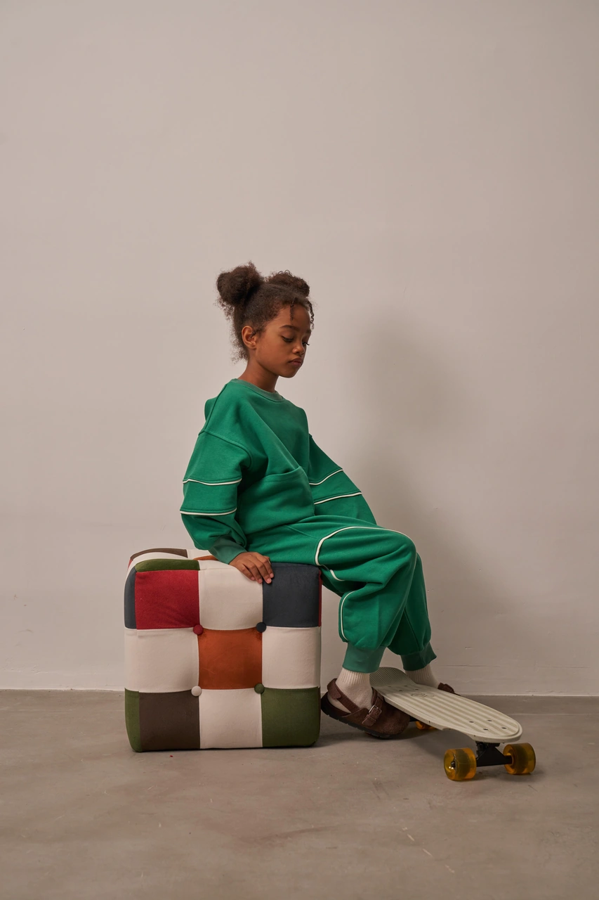Yeşil Asimetrik Cep Detaylı Oversize Çocuk Alt Üst Takım Yeşil
