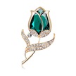 Yeşil Çiçek Yapay Elmas Broş Lale Cam Broş Yeşil