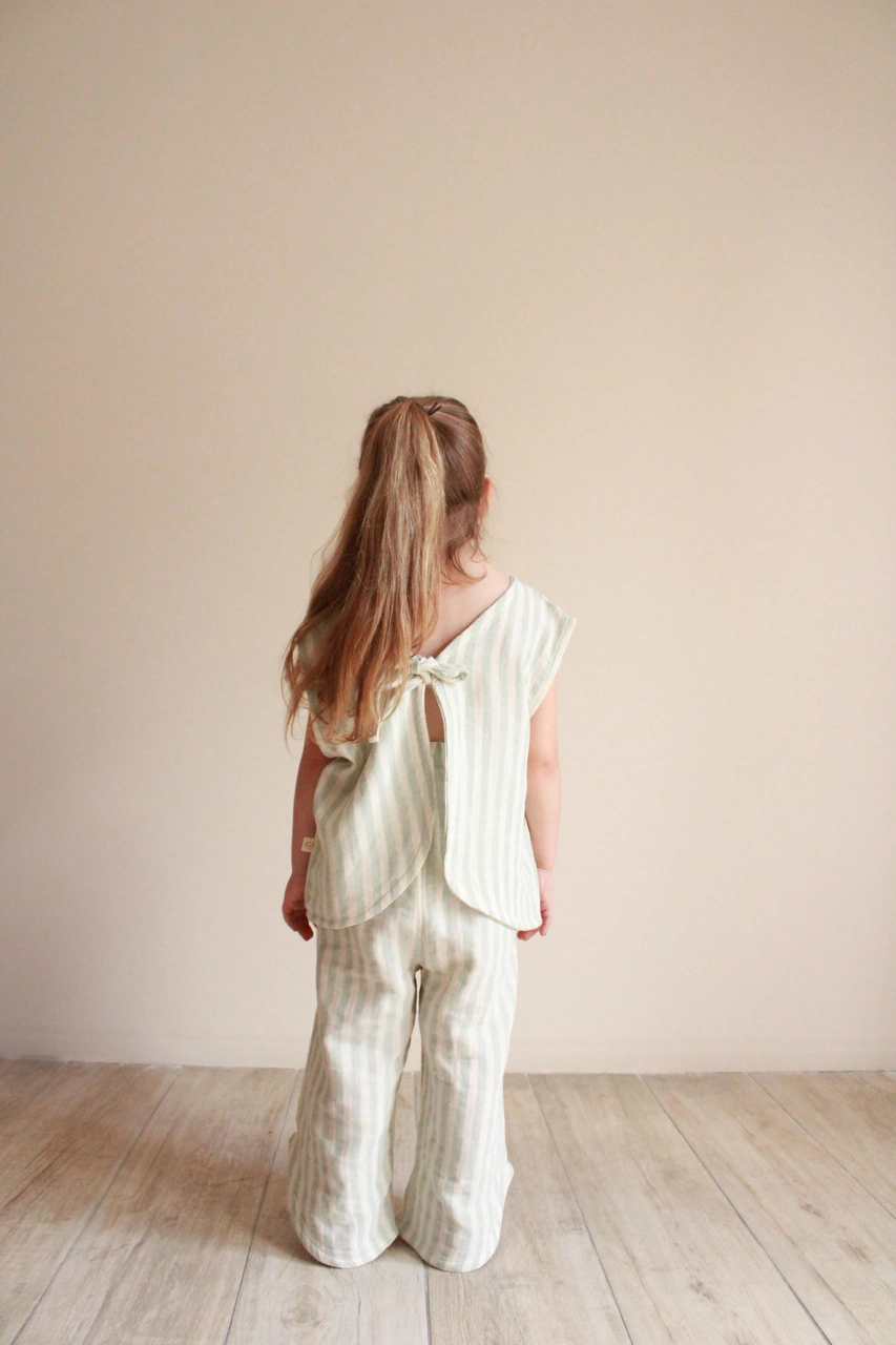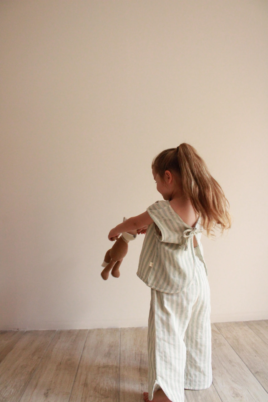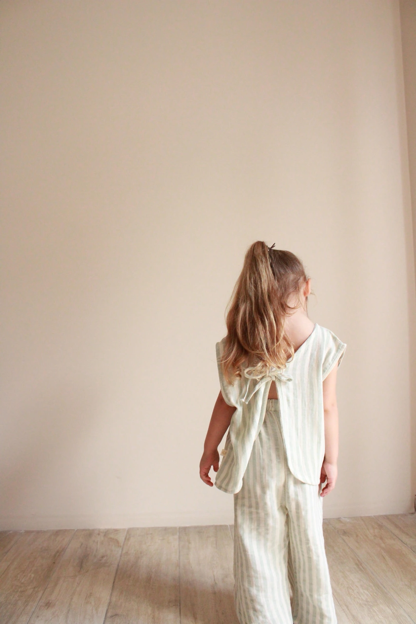 Yeşil Çizgili Sırt Detaylı Müslin Takım Yeşil