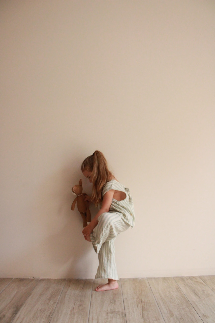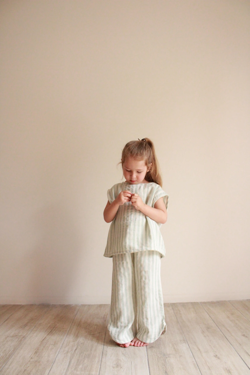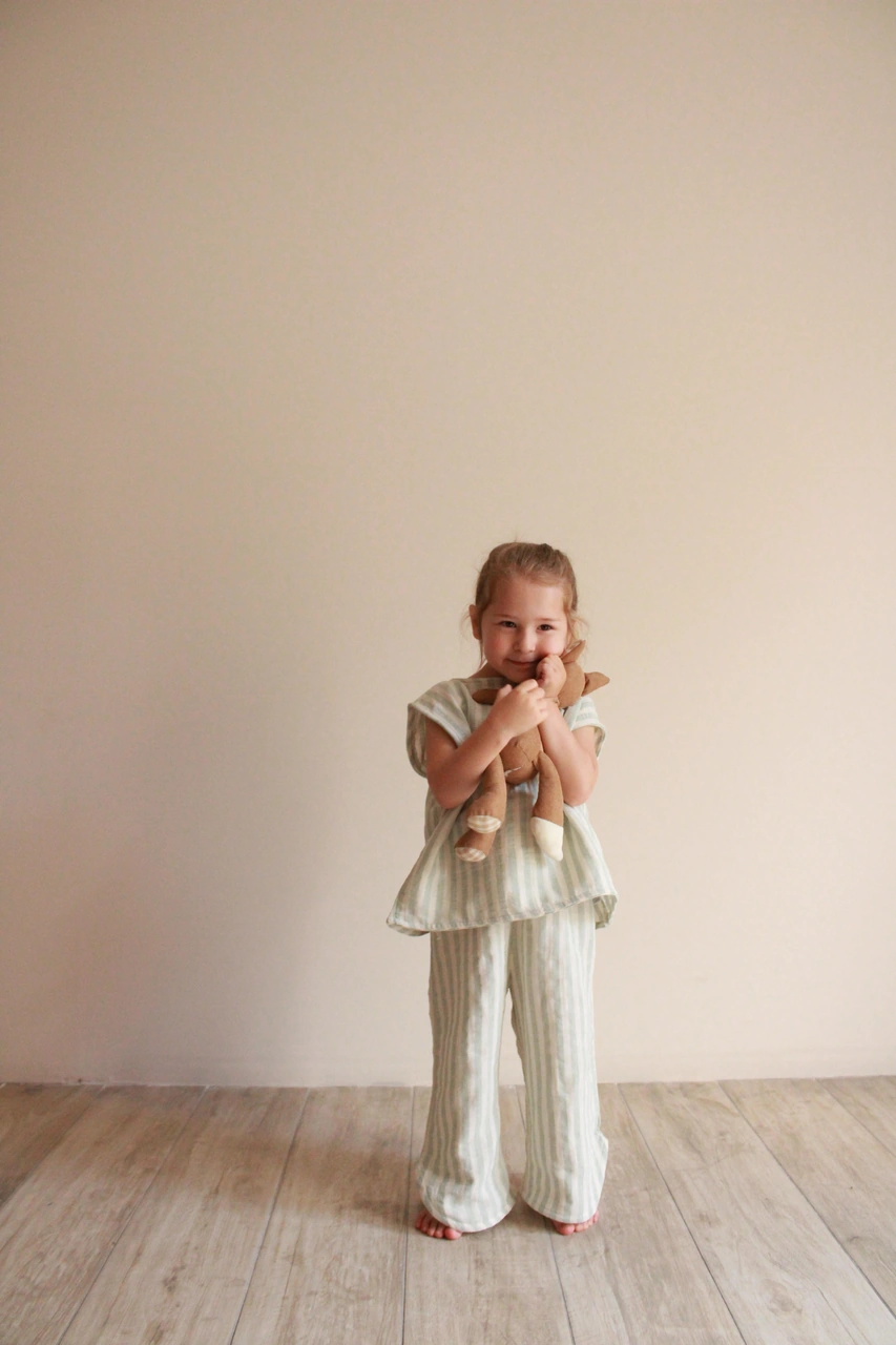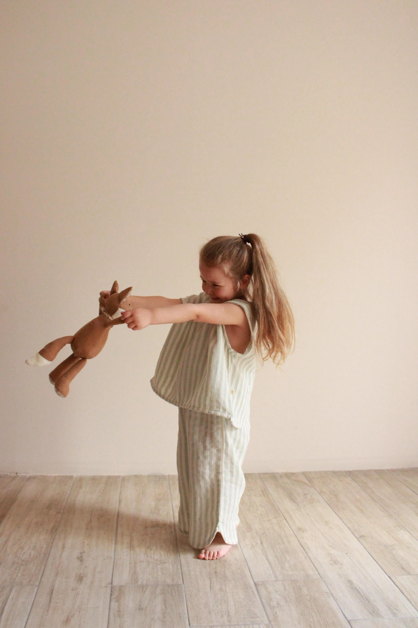 Yeşil Çizgili Sırt Detaylı Müslin Takım Yeşil