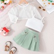 Yeşil Çocuk Giyim Kız Setleri Oymak Üst + Cami Üst + Haki Etekler 3 Adet Yaz Takım Elbise Setleri Kızlar Için 12M-6Y Çocuk Giysileri 12M-6Y Yeşil