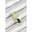 Yeşil Damla Zirkon Taşlı Kraliçe Taçlı Kedi Figürlü Gold Renk Kad Çok Renkli