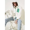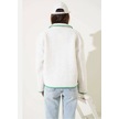 Yeşil Fermuar Cepli Kuzu Mont Beyaz T1085 Beyaz