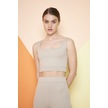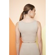 Yeşil Fitilli Kare Yaka Esnek Örme Crop Büstiyer Atlet Bej