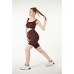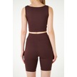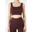 Yeşil Fitilli Kare Yaka Esnek Örme Crop Büstiyer Atlet Kahverengi