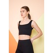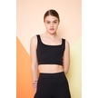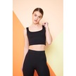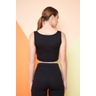 Yeşil Fitilli Kare Yaka Esnek Örme Crop Büstiyer Atlet Siyah
