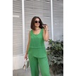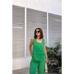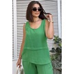 Yeşil İthal Müslin Kumaş, Basic, Katlı, Salaş Askılı Bluz & Atlet Yeşil