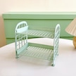 Yeşil Kawaii Çift Katmanlı Depolama Rafı Masaüstü Katlanır Makyaj Kutusu Raf Raf Kozmetik Depolama Bitirme Yurdu Banyo Yeşil