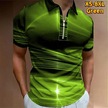 Yeşil Rahat Yaka T-shirt Genç Erkek Moda Fermuar Kısa Kollu Tişört Erkek 3d Kırmızı Işık Dalga Baskı T Gömlek Yeşil